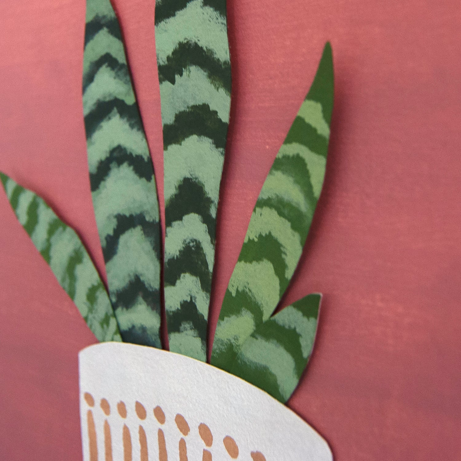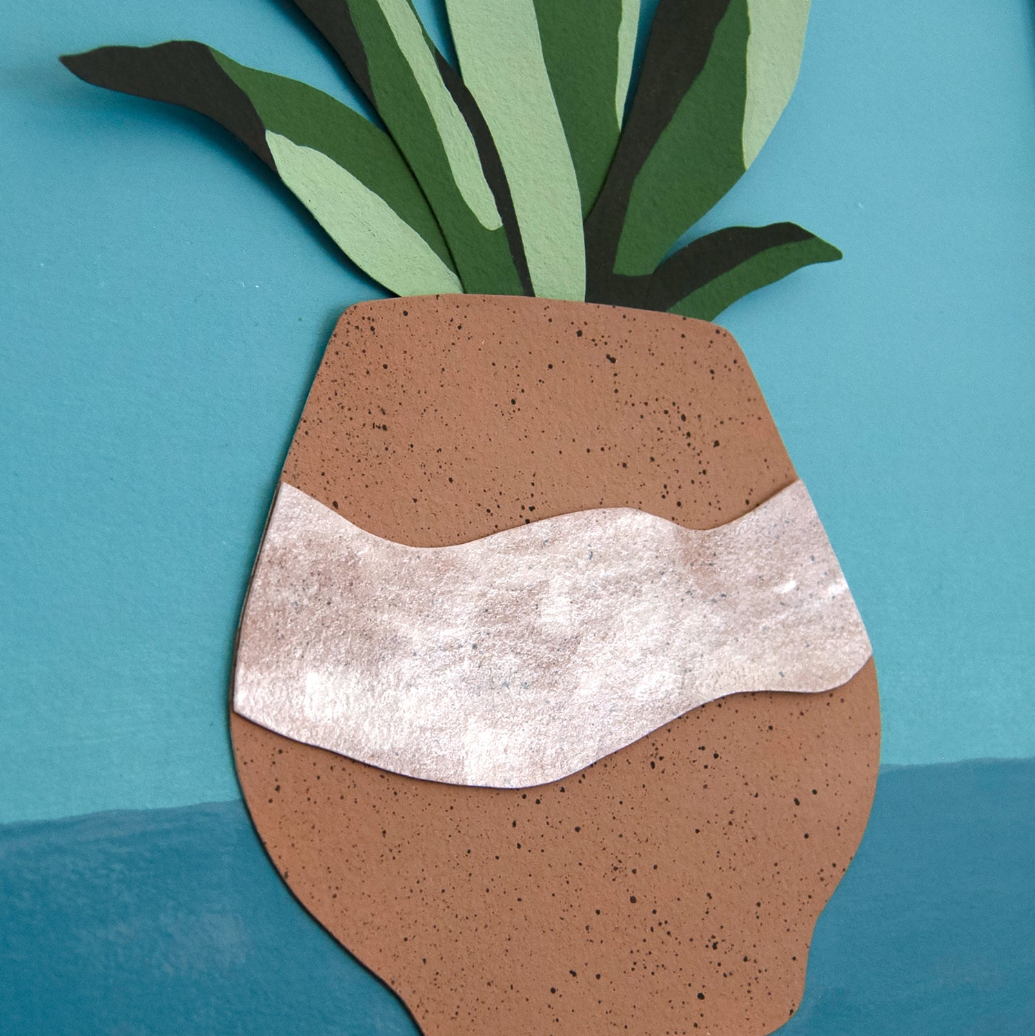"Sunny Jade Pothos" Framed Acrylic & Cut Paper Original, 16 x 20 inches